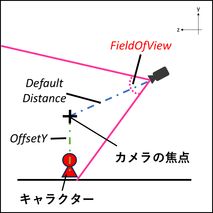 パラメータが高いほど、画面に表示されるゲーム内領域が多くなり奥行が強調されます。