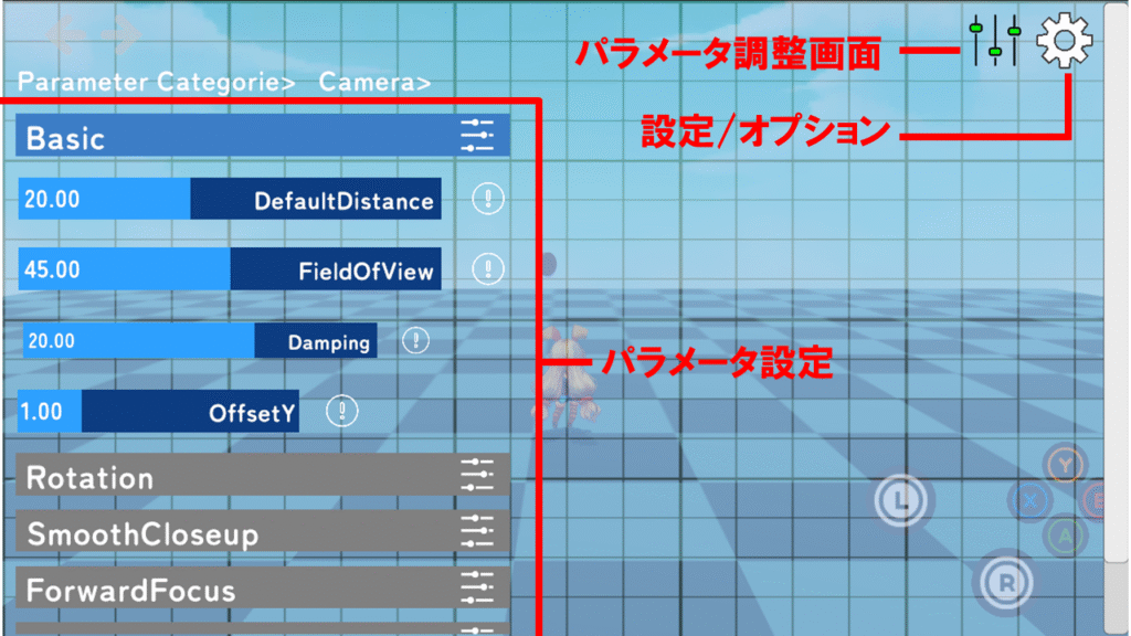 RotationSpeed -カメラの感度 : カメラ操作でカメラが旋回するスピード